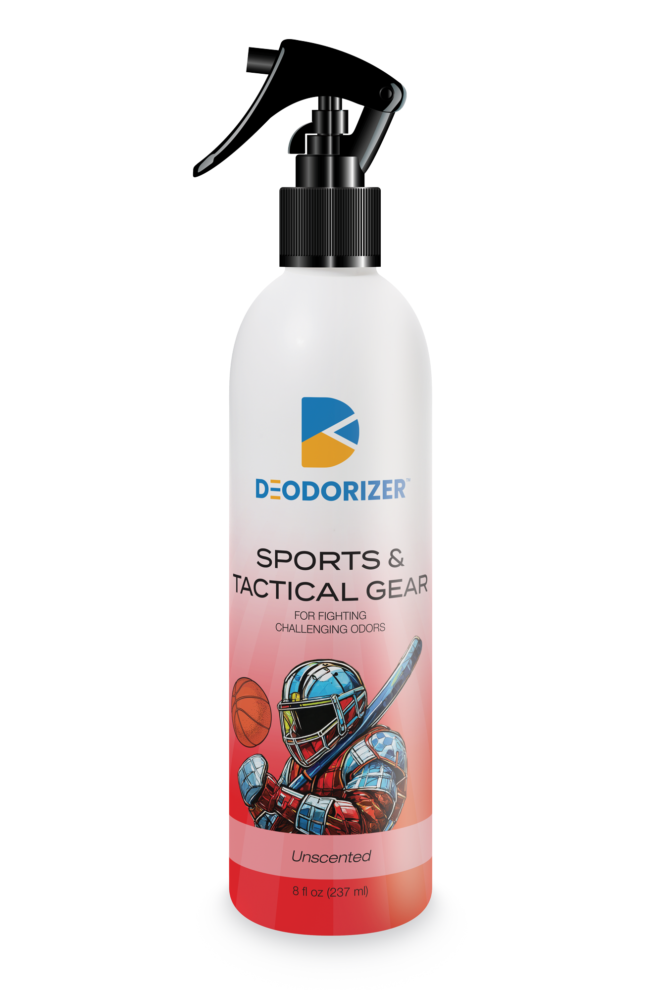 Use on equipment and devices that soak up body odor that cannot easily be laundered, like sports and gym equipment, body armor, tactical vests, hats, helmets, footwear, gloves, and more. D-Odorizer’s Sports & Tactical Gear Odor Eliminator is formulated with bonding agents that work at the molecular level to target hard-to-remove odors from your gear. Ready to use! Clean and remove excess odor-causing debris. Spray 5 to 8 times on an odor source. For heavier stains or odors, soak the area for 10 minutes, wipe or blot clean, and air dry. If odors persist, additional applications may be necessary. For clothes and fabrics pre-test a small area for color fastness and water staining. Consult a technician for specific industrial applications. Made in the USA.